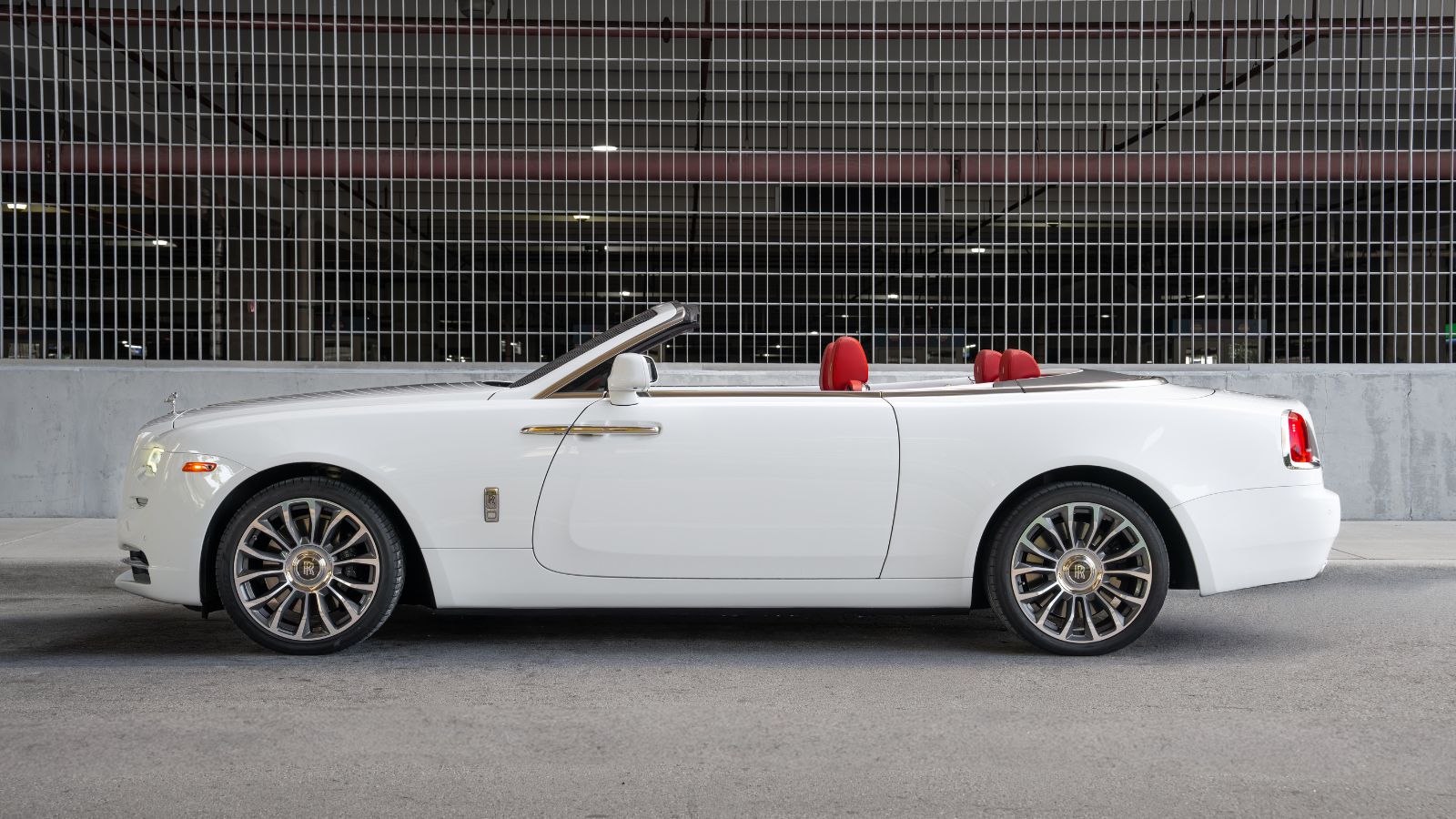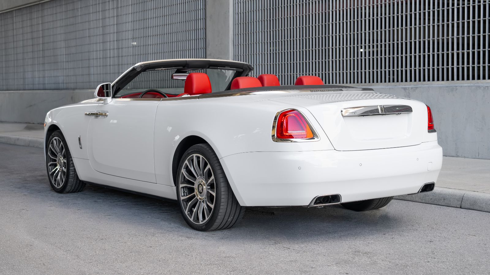 Every Rolls-Royce represents a level of craftsmanship reserved for a select few, but the Rolls-Royce Dawn rental introduces something even more exclusive — open-air luxury without compromise. The white Rolls-Royce Dawn convertible with a striking red interior and white piano wood accents delivers a bold yet elegant presence, with daily rates starting at $1,295 per day.